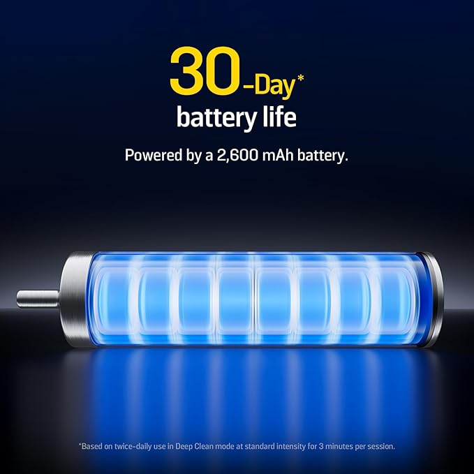 - EXTENDED BATTERY LIFE: Provides up to 30 days of use per charge, ensuring a reliable oral care routine while eliminating the frustration of unexpected battery depletion.