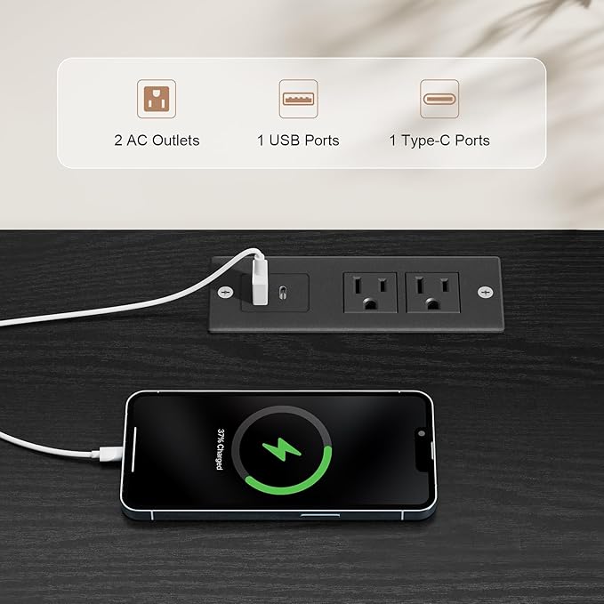 - Integrated Charging Station: The TV cabinet is equipped with power outlets and cable ports for convenient charging and device connectivity. No need to purchase additional power cords