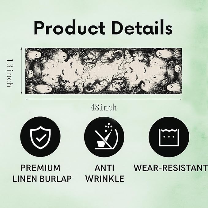 GPGHE Halloween Table Runner Black Ghost Holiday Burlap Table Decoration Indoor Outdoor Home Decor Party Supply 13 x 48 Inch