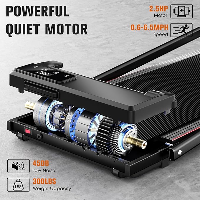 - 【Easy Storage & Space Saving】This inclined walking Pad treadmill front roller skate design allows you to easily drag it to change your storage location. This compact treadmill weighs only 42 lbs, Simply remove the screws for easy folding,The folded height is only 4.7 inches,making it easy to store in small spaces such as apartments or dorm rooms.
