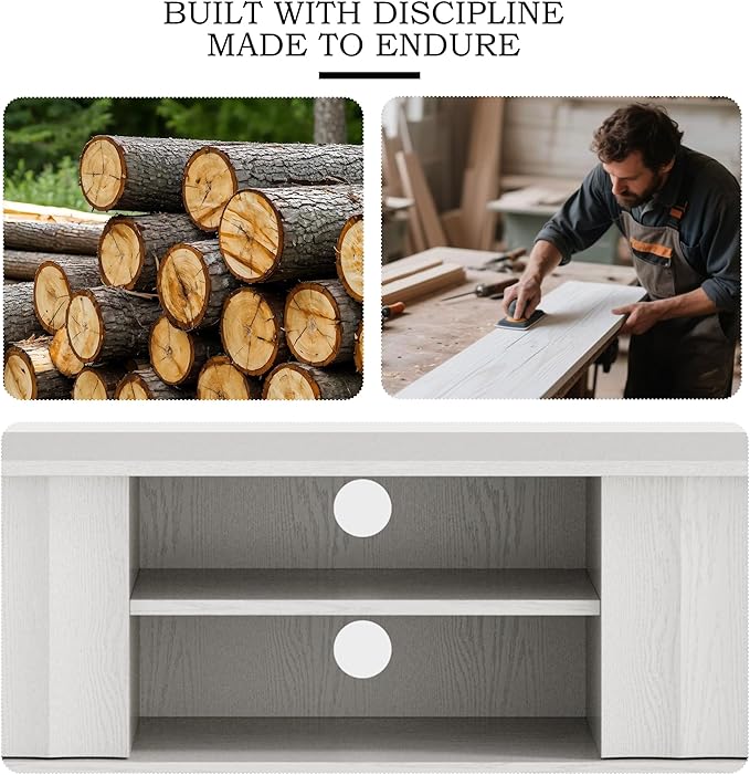 - ENGINEERED STABILITY PROTECTION - Supported by durable metal legs with anti-slip silent pads, this white wood tv stand ensures stable placement and reduces noise. The anti-tip design adds extra security, designed with soft-rounded corners and child-friendly profiles, making it suitable for families with kids or pets