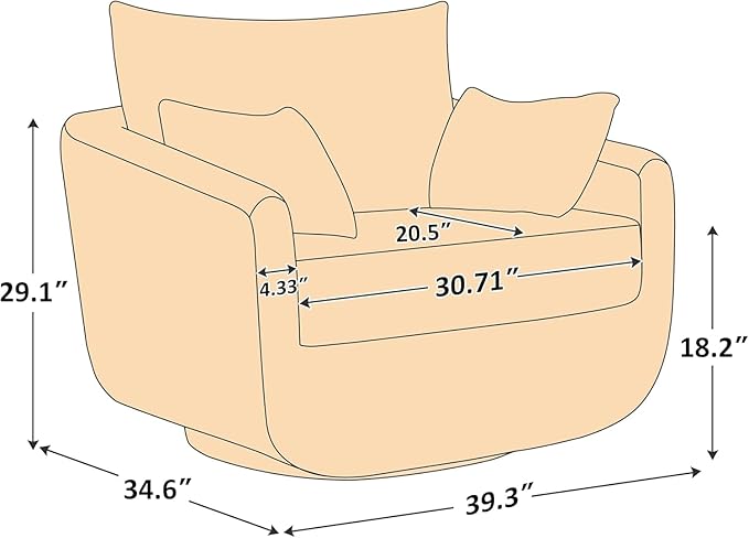 - Durable Construction & Floor-Friendly Design---Built to last with a 360° solid wood swivel base (supports 330 lbs) and reinforced steel frame,No wobbling, squeaking, or sudden drops,just silent, stable rotation perfect for conversations,With its swivel base, the chair can rotate fully, maximizing space utilization in smaller rooms.The wood he base is wrapped with black anti-dirty gaske also protects hardwood floors from scratches.