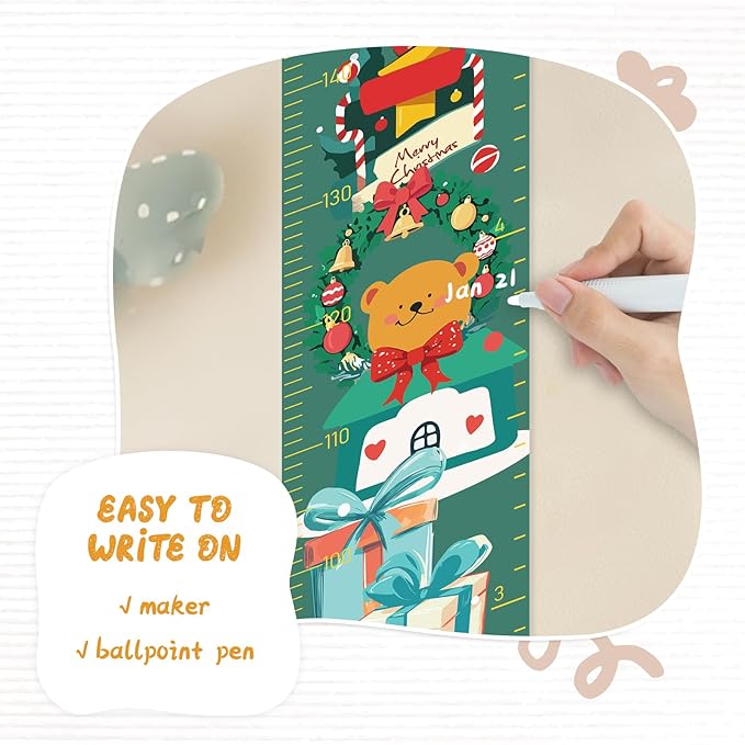 - Design: Kids growth chart with rope at the top of the chart, easy to install and removeable, foldable and portable design, easy to store, hang, roll up, transport, and save space. It boasts a material that's easy to write on, where you can use dark colored ballpoint pens and markers to track growth milestones.