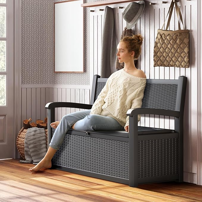 - All-Weather Protection: Crafted from weather-resistant resin, this outdoor bench with withstands sun exposure, moisture, and temperature changes while maintaining its structural integrity season after season, this porch storage stands tough for long-lasting protection.