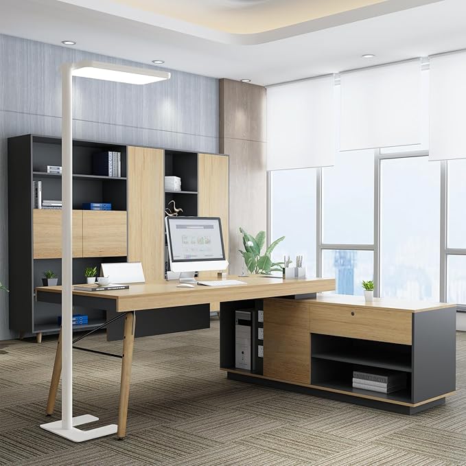 - UPLIGHT AND DOWNLIGHT LED FLOOR LAMP: This 80W modern floor lamps features a 25.1in x 11.8in large rectangular panel that emits light 20W upwards and 60W downwards, the downward light provides task lighting for workspaces, while the upward light enhances ambient brightness, perfect for offices lighting, or as a floor lamps for living room