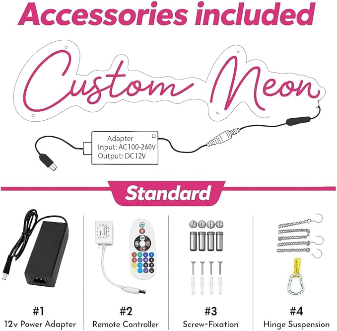 - đ ïžăComplete Ready-to-Hang KităEverything included for effortless installation: high-clarity 8mm acrylic backplate with pre-drilled holes, UL-listed power adapter, mounting templates, screws, and chains. Hang securely on walls, windows, or display tabletops within minutesâno electrician needed.