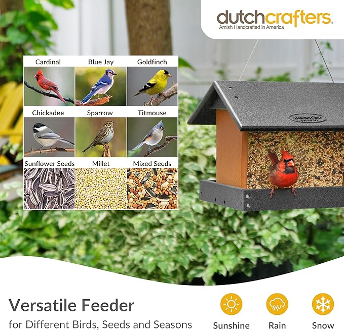 - Made in USA - Our poly bird feeder for outdoors is proudly made in America using high-quality materials. Each large bird feeder is carefully crafted by a skilled craftsman in Indiana. Our hopper bird feeders for outdoors embody our dedication to local craftsmanship and superior quality