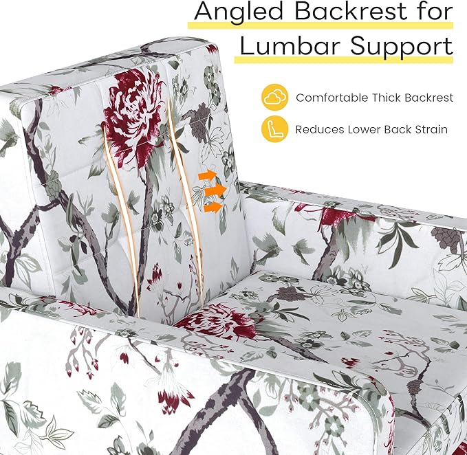 Kromax Mid-Century Modern Accent Chair Set of 2 for Living Room, 496 Lb. Weight Capacity, Dual Armrests, Comfy Extra Large Seat, Timeless Style Perfect for Reading & Relaxing, Red Floral