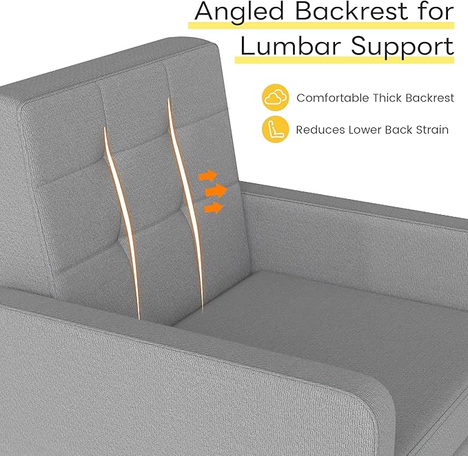Kromax Mid-Century Modern Accent Chair for Living Room, 496 Lb. Weight Capacity, Dual Armrests, Comfy Extra Large Seat, Timeless Style Perfect for Reading & Relaxing, Light Grey